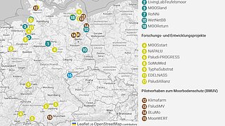 Das Bundesumweltministerium (BMUKN) fördert vier Pilotvorhaben zum Moorbodenschutz auf landwirtschaftlich genutzten Flächen. Über einen Zeitraum von zehn Jahren (2021–2031) werden praxisnahe Methoden erprobt, um trockengelegte und intensiv genutzte Moorböden wiederzuvernässen und nachhaltig zu bewirtschaften.