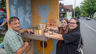 Dazu werden einerseits zusammen mit zivilgesellschaftlichen Akteur*innen Kooperationsverträge zur biodiversitätsfördernden Grünflächen- und Gewässerpflege erarbeitet. Andererseits wird die Scheune Neuhof zurückgebaut, entsiegelt und zu einem nachhaltigen Begegnungsort entwickelt. Im Rahmen eines Wettbewerbs und einer Nachhaltigkeitskampagne werden verschiedene städtische Plätze umgestaltet und die Aufenthaltsqualität vor Ort verbessert.