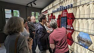 Das Begegnungszentrum ist der zentrale Ort für den Dialog und Austausch zwischen Bürger*innen, Interessierten und Wissenschaftler*innen. Hier können auf einem großen Display die von Bürgerforschenden erhobenen Daten sowie weiterführende Messdaten verfolgt werden. Das Herzstück des Zentrums ist die Ausstellung „Dem Wasser auf der Spur“, die Besucher*innen dazu einlädt, das Thema Wasser in seinem vielfältigen Kontext zu entdecken und zu reflektieren.