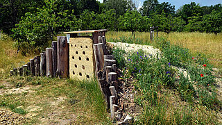Im brandenburgischen Finsterwalde baut das Forschungsinstitut für Bergbaufolgelandschaften (FIB) e. V. gemeinsam mit Bürger*innen künstlich angelegte Lebensinseln, die Wildbienen Nahrung, Nistplätze und Überwinterungsmöglichkeiten bieten. Die Idee dahinter: Vernetzte, standortgerechte Strukturen in ansonsten ausgeräumten Landschaften zu schaffen.