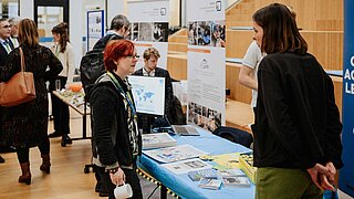 Austausch zu Projekten und Partnerschaften an den Ständen des „Marktplatzes“