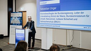 Umfragen zeigten, wie zentral das Thema Meeresschutz und Plastikmüll in der deutschen Gesellschaft wahrgenommen werde, auch nach der Bundestagswahl im Februar werde dies ein wichtiger Punkt bleiben. Bei internationalen Formaten wie G7- oder G20-Treffen habe die Bundesregierung das Thema in den vergangenen Jahren immer wieder auf die politische Agenda gesetzt und Lösungswege vorangebracht, zuletzt mit dem Ocean Deal. Im Rahmen der UNEA wurde ein Prozess gestartet, um ein weltweites Plastikabkommen zu erzielen, denn die Problematik der Meeresvermüllung könne nur global erfolgreich gelöst werden. Das Förderprogramm gegen Meeresmüll zeige, wie das Meer uns zwingt, international zusammenzuarbeiten, denn der Ansatz „my country first“ funktioniere im Meeresschutz nicht. Den Start des vierten Förderaufrufs des Programms gegen Meeresmüll wertete Unger als ein wichtiges Signal nicht nur für die Akteurinnen und Akteure, sondern auch für die internationalen Verhandlungen zum Meeresschutz. Er kündigte an, dass am 6. und 7. Mai die erste nationale Meereskonferenz in Berlin stattfindet.
