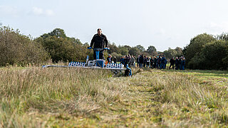 Im Moor-Pilotvorhaben Schleswig-Holstein fand die erste Mahd auf wiedervernässten Moorflächen statt.