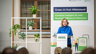 Der Green-AI Hub Mittelstand soll KMU die Vorteile von KI näherbringen. Die Initiative wird die Erforschung, Entwicklung und Erprobung ressourcenschonender KI-Technologien vorantreiben. Gemeinsam mit ausgewählten KMU werden hierfür praktikable KI-Anwendungen für betriebliche Herausforderungen entwickelt, beispielsweise zur Optimierung der Logistik und des Wareneinsatzes im Handwerk oder auch digital integrierte Lösungen zur Wartung von Anlagen und zur Schließung von Stoffströmen in der Industrie. Mobile Test- und Demonstrationszentren sollen nachhaltige KI-Verfahren direkt in die KMU bringen. Diese können sie in realer Umgebung testen.